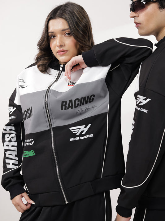 Expertly crafted for comfort and style, our Black & White Oversized Racer Sweatshirt is a...
